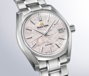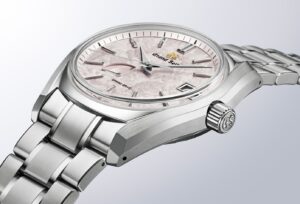 グランドセイコー初の自動巻メカニカルモデルとして1967年に登場した「62GS」のデザインを現代的に進化させたケースに、季節が移ろう中でほんのひと時出会うことができる美しい春の情景を表現したダイヤルを収めたモデルです。