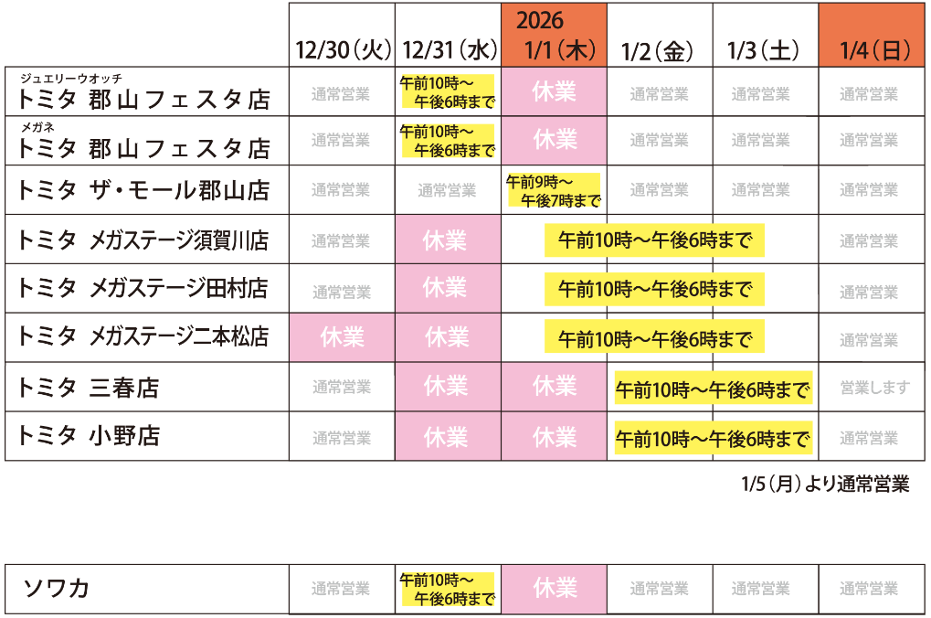 2025年12月より2026年 年末年始営業時間変更のご案内