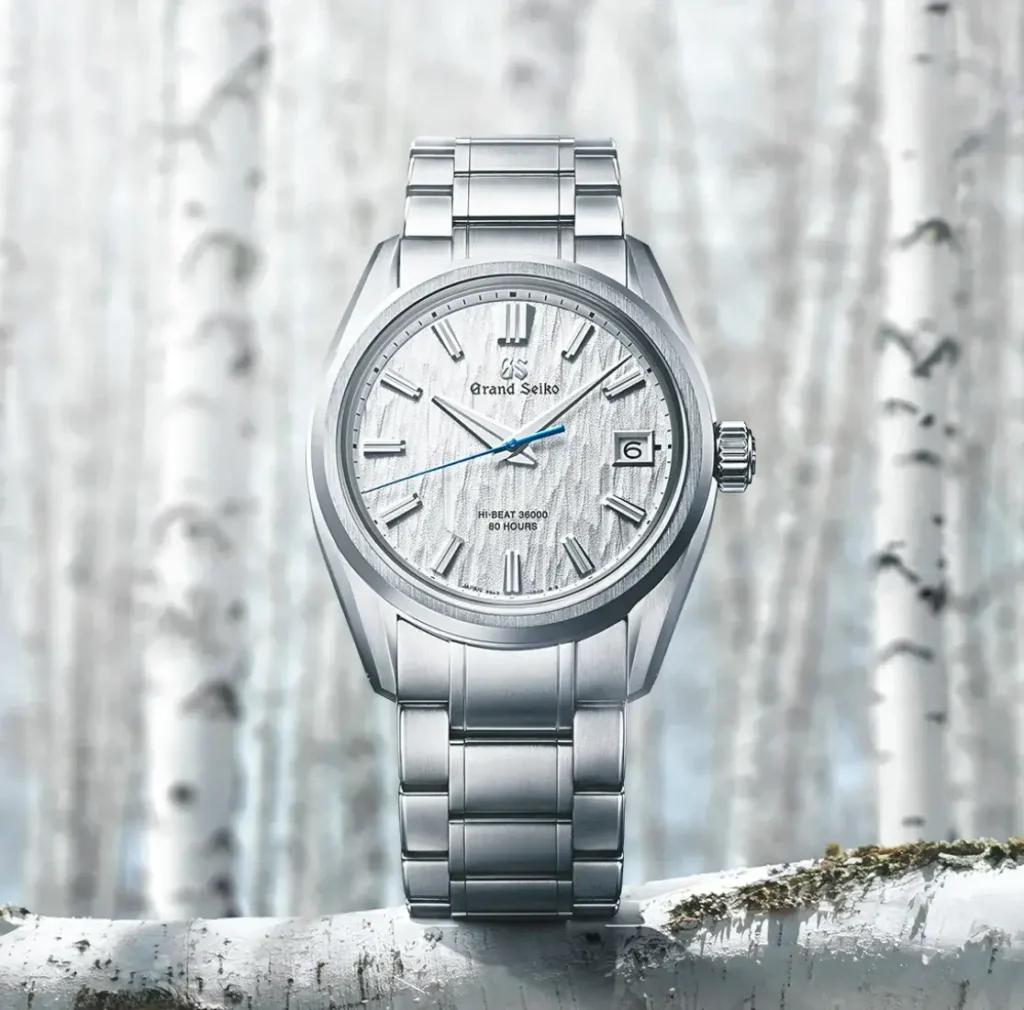 グランドセイコーの機械式時計の製造拠点「グランドセイコースタジオ 雫石」の近くには、日本有数の白樺の群生地域があります。高原の澄んだ空気をまとい、すらりと高く伸びた白樺が奥行きを持って幾重にも林立する神秘的な光景からは、自然の美しさや力強さを感じることができます。本作では、この壮麗な白樺林をダイナミックな型打模様と繊細なカラーリングを施したダイヤルで表現しています。